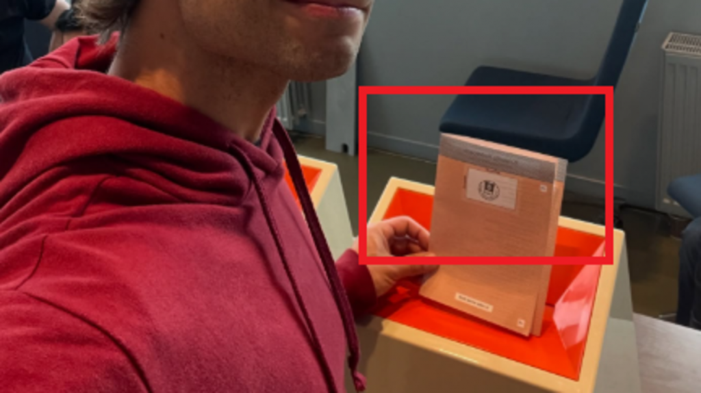 In the photo, Rybak appeared to hide his ballot paper… but eagle-eyed fans zoomed in and noticed the name Kristelig Folkeparti (Christian Democratic Party) faintly visible through the paper.